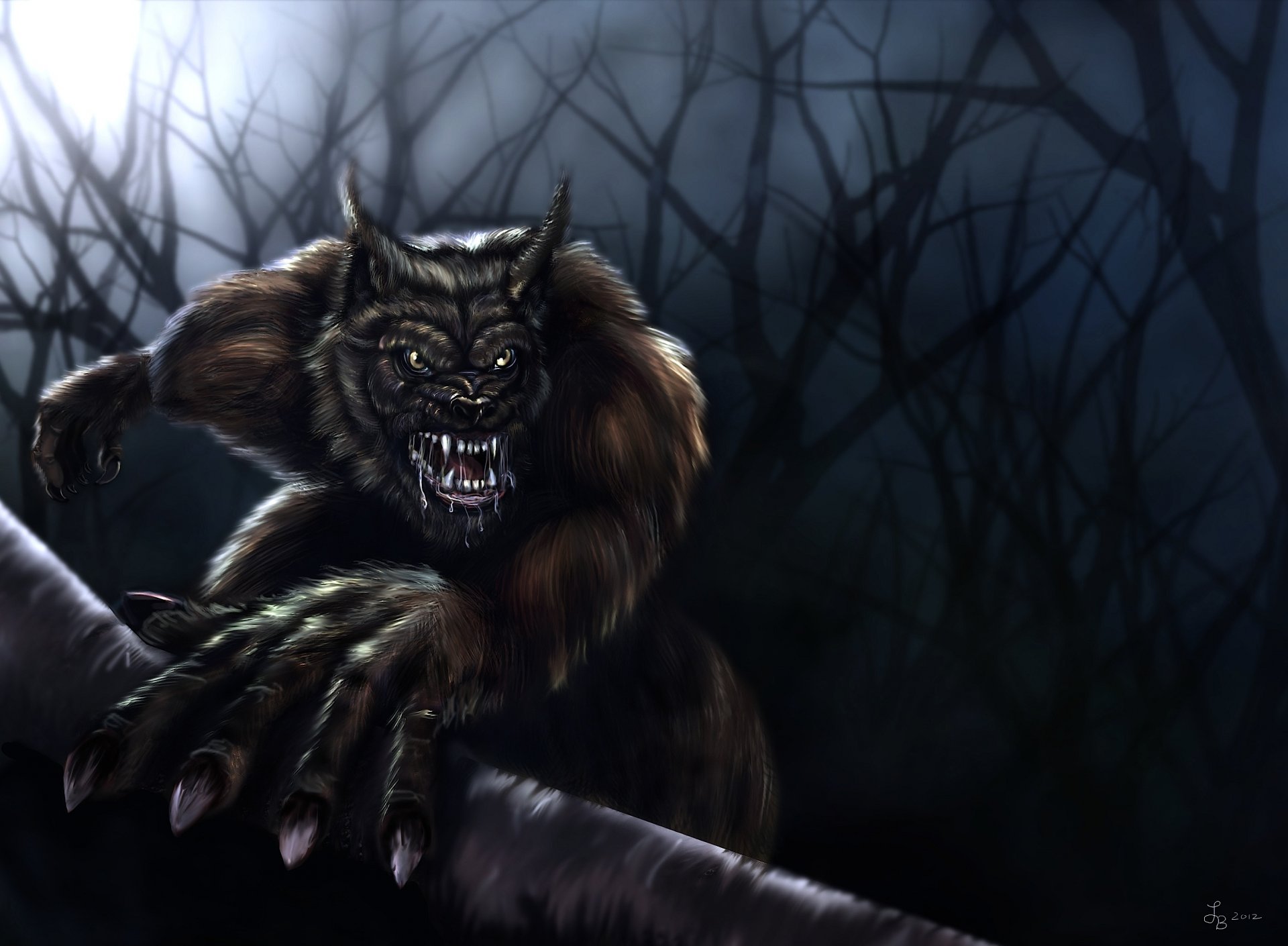 Злобный оборотень в мрачном лесу