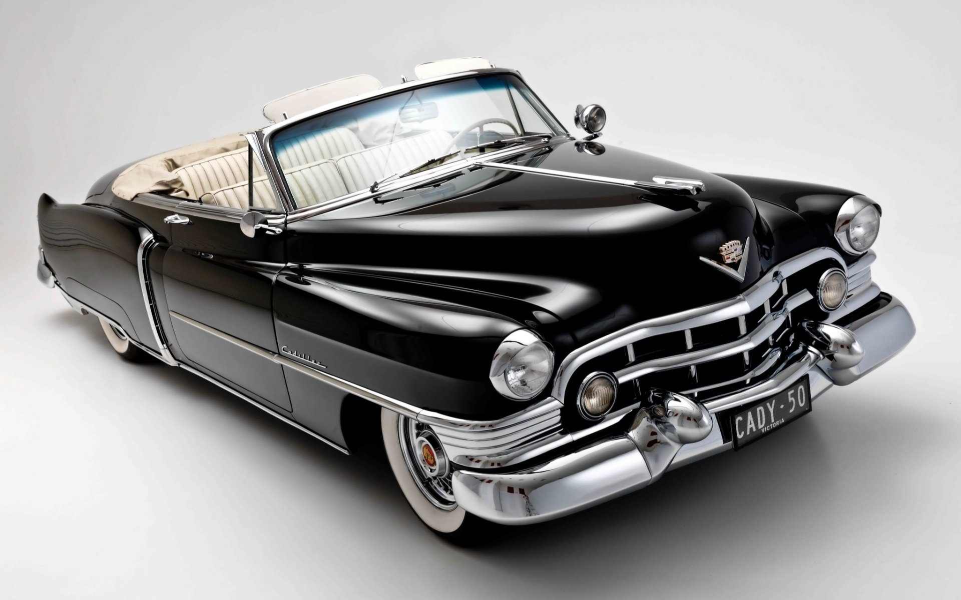На белом фоне легендарный шикарный чёрный кадиллак с открытым верхом